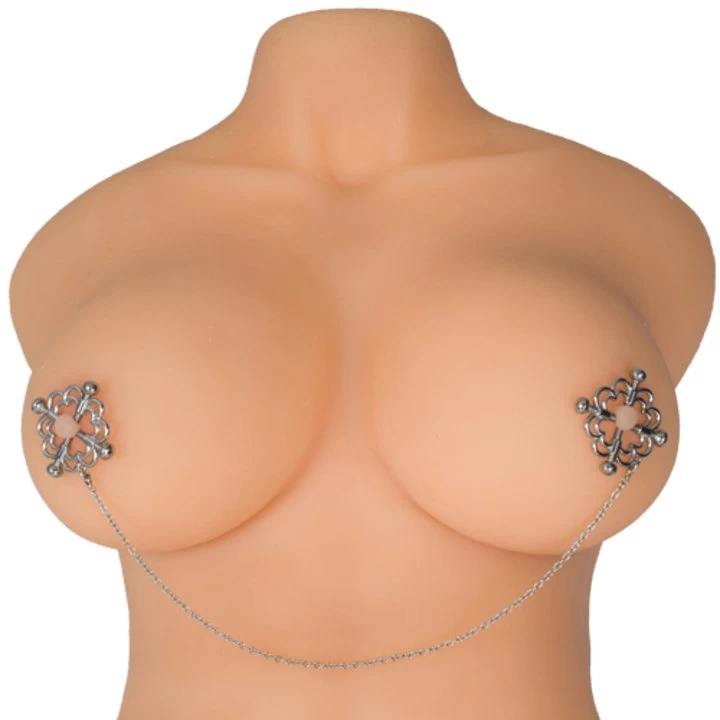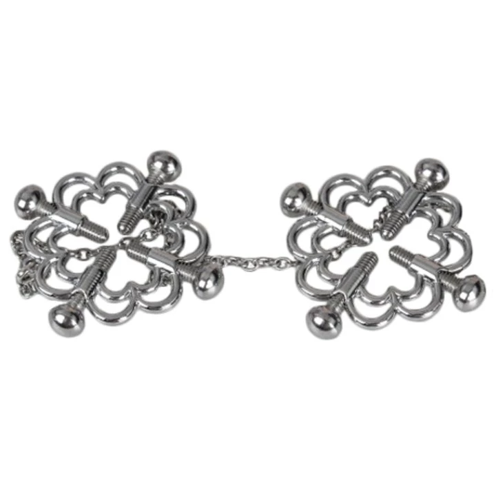 For titillating stimulation, add the Bondara Screwed Flower Nipple Clamp Rings to your play. These statement clamps ensure all eyes are up top as the flower-shaped rings nestle against your nipples. With four screws, you (or your partner!) can create the perfect level of pinch as each one is individually adjusted.