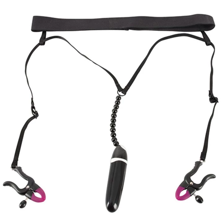 Let the clamps pinch on your vagina as you adjust each one to the perfect level of pressure. Meanwhile, the vibrating bullet sits inside you as you explore seven vibration modes for a mix of intensities and patterns. As you play, the row of beads rub against you for even more stimulation.