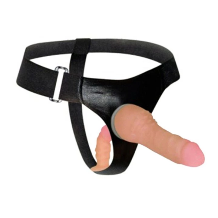 Get this fantastic Love Stick Light Tone Double Strap-On for a totally satisfying ride. Both attached dildos are made of βloveskin’ which is firm enough for penetration but sufficiently soft to have plenty of flexibility. The outer dildo is 6 inches long and the inner dildo is 4 inches in length to satisfy you in a variety of ways. Both dildos are realistic to the touch and veined for added stimulation with a nodule covered βclit bumper’ at the base of the main dildo that will rub satisfyingly against the receiver. This awesome double strap-on dildo comes complete with a main dildo and a fully adjustable elasticated strap-on harness with in-built secondary dildo. Get this double strap-on dildo for total strap-on satisfaction.