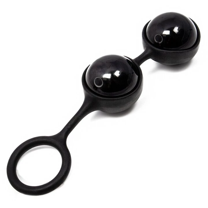 β’ Two shiny black jiggle balls for inner vaginal pleasure