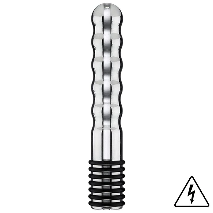 Enhance your sexual play with the amazing ElectraStim Bi-Polar Electrosex Wave Metal Dildo. The loaded curves and deep ridges running throughout the whole shaft offer intense stimulation with or without a stimulation unit. Experience a mesmerising massage as this ribbed Wave metal dildo is an expert at perfectly hitting the G-spot and P-spot. With a 5.5-inch insertable length, it is a wonderfully erotic treat for beginners and a must have addition for electrostim enthusiasts. To instantly transform the way you play, plug the bi-polar Wave dildo into an ElectraStim stimulation unit and prepare for spine-tingling internal pleasure.