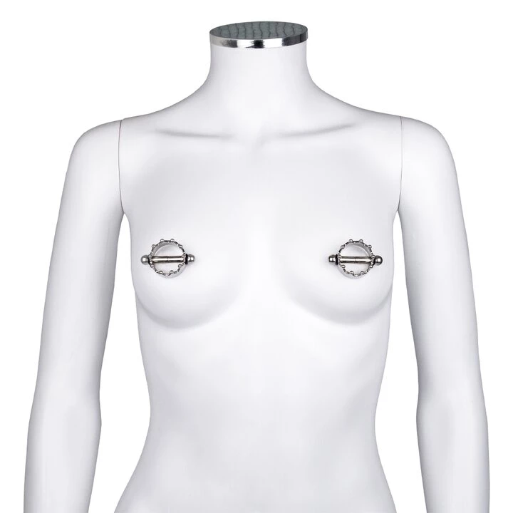 To place, separate the magnetic bars and put the crown over the nipple area. Slide the bar magnets into position and release to unleash the intense pinching pressure onto your willing submissive.Β